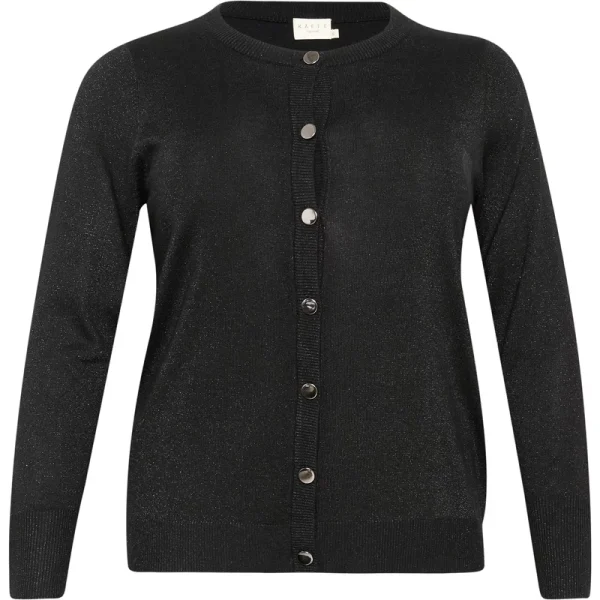 Dit vest voor dames van Kaffe Curve is gemaakt van een viscosemix. Het model heeft een ronde hals en lange mouwen. Het vest heeft een knoopsluiting.Extra details zijn: Ronde hals Knoopsluiting Glitter detailMateriaal:70% Viscose, 20% Nylon, 10% MetallicWasvoorschrift:Machinewas max. Fijnwas 30 graden Celsius. Niet in droger
