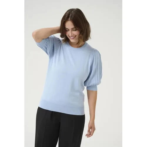 Kaffe top lichtblauw fijn gebreid Prijzen