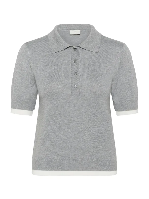 Design: Gelaagde look, Turn-down kraag, Contrasterende inserts; Type sluiting: Knoopsluiting; Materiaal: Knitwear; Halstype: Polokraag; Motief: Mélange; Extra's: Fully fashioned, Met textuur; Pasvorm: Slanke pasvorm; Armlengte: Kwartmouw; Lengte: Normale lengte