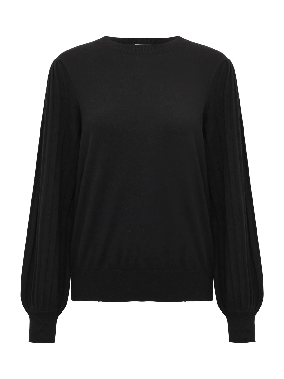Design: Geribbelde kraag, Rechte zoom, Pofmouwen, Geribd ceintuurtje; Materiaal: Knitwear; Halstype: Ronde hals; Motief: Effen; Details: Plissé; Extra's: Fully fashioned, Met textuur; Pasvorm: Normale pasvorm; Armlengte: Lange mouw; Lengte: Normale lengte