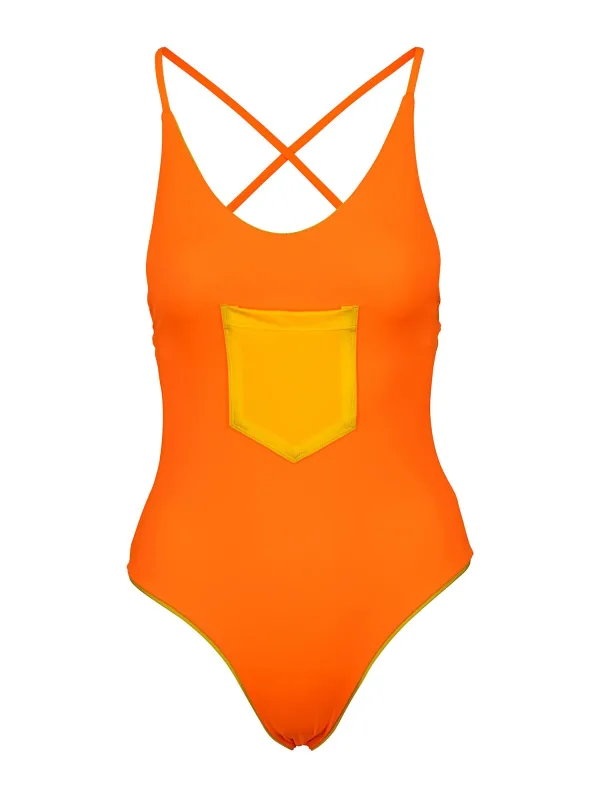 Kalaia Badpak ‘Pocket Reversible Orange Swimsuit’ oranje