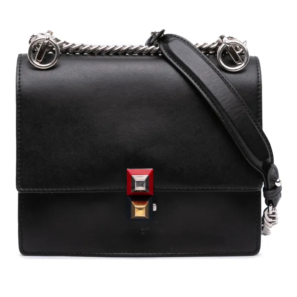 Pak stijl, til je dagelijks leven naar een hoger niveau. Deze tweedehands Fendi Kan I crossbody tas biedt design flair in een compact formaat. De iconische studdecoratie voegt een kenmerkende touch toe, waardoor elke look direct wordt opgewaardeerd. Geniet van de onderhoudsvriendelijke constructie, zodat dit stuk een tijdloze basis in je garderobe blijft. De kettingband biedt comfortabel, handsfree dragen. Perfect om een vleugje luxe toe te voegen aan zowel casual uitjes als avond evenementen. Een duurzame en stijlvolle investering. Afmetingen: 16 x 19 x 9 cm Conditiebeoordeling: B+ Informatie over de conditie: Achterkant buitenkant versleten. Sluiting gekrast. Hoeken buitenkant versleten. Voorzijde buitenkant versleten. Handvat buitenkant versleten. Binnenvoering versleten. Praktische bevestiging gekrast. Zijkant buitenkant versleten.
