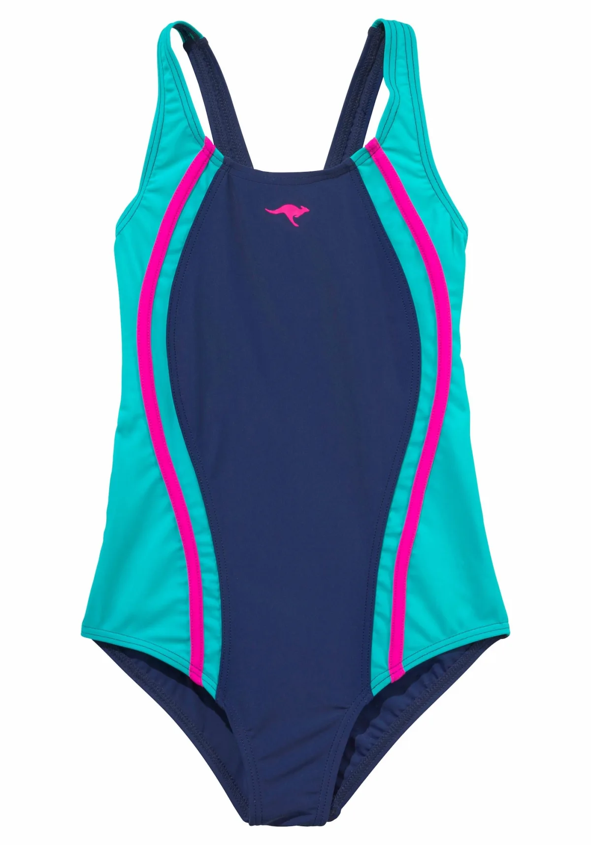 Specificaties: KangaROOS Badpak navy / jade groen / neonroze