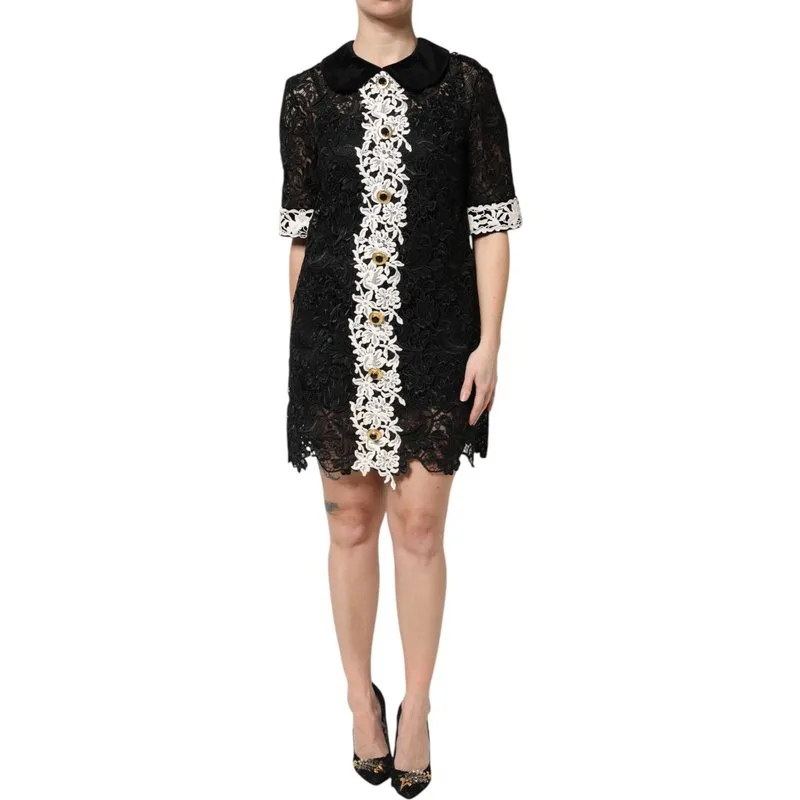 Verbluffend, betoverend, fascinerend in deze exquisite Versierde Sheath Mini Jurk. Ontworpen om een onvergetelijke entree te maken, is de delicate zwarte kant versierd met prachtige witte bloemdecoraties, wat zorgt voor een verfijnde charme. Een luxe fluwelen kraag voegt een vleugje weelderige elegantie toe, terwijl de mini-lengte en knoopsluiting een mooi flatterende silhouet creëren. Perfect voor avondevenementen, deze jurk integreert naadloos in je meest glamoureuze gelegenheden en belooft de aandacht te trekken en je stijl te verheffen met zijn unieke mix van klassieke luxe en moderne aantrekkingskracht.