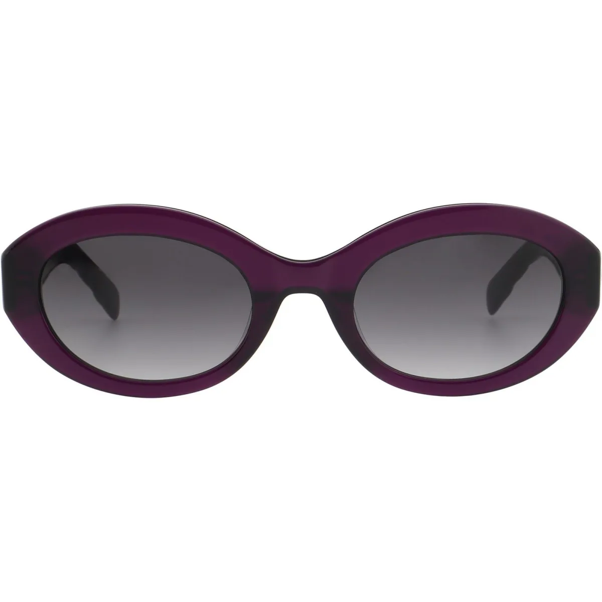 Karen Millen brengt je deze ondiepe, trendy, ovalen zonnebril. Hier gepresenteerd in een flatterende donkerpaarse kleur met grijze lenzen, wordt het aangevuld met een 2-dimensionale dierenafdruk. Kan worden voorzien van glazen met een recept.