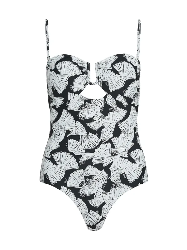 Specificaties: Karl Lagerfeld Badpak ‘Fan’ zwart / offwhite