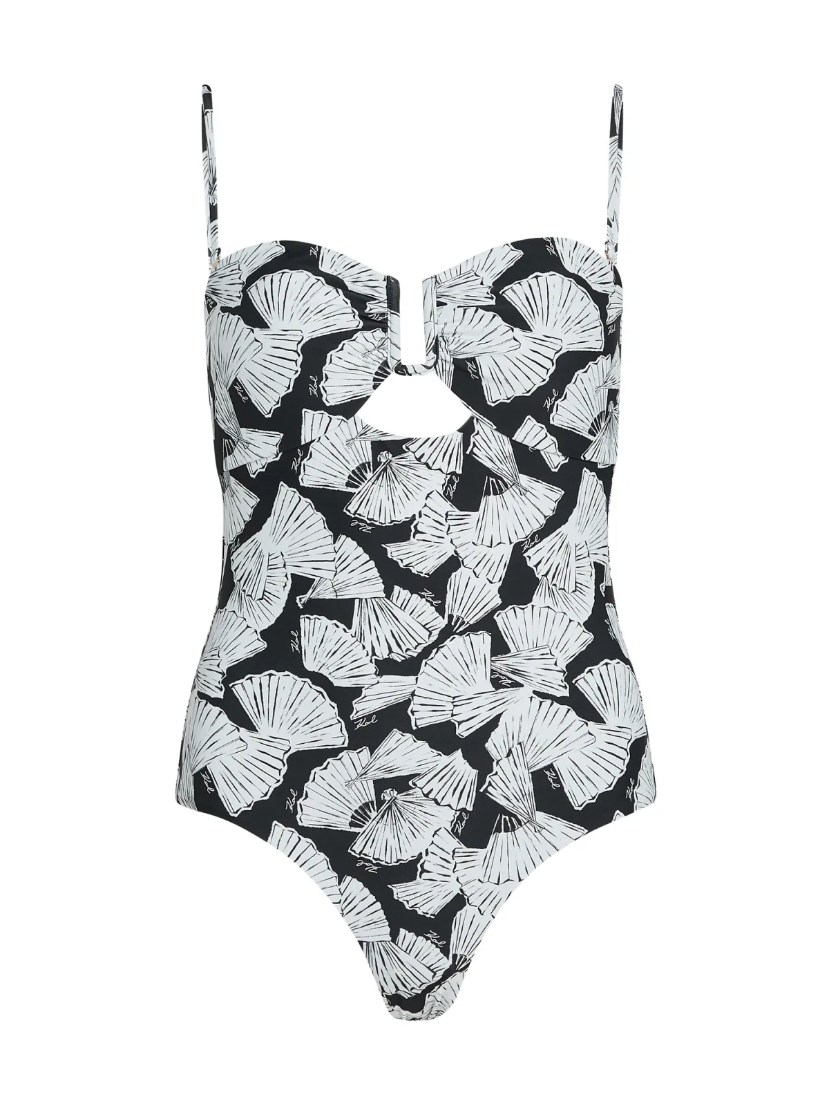 Karl Lagerfeld Badpak ‘Fan’ zwart / offwhite