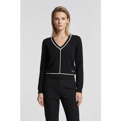 - Bij otrium.nl kun je Karl Lagerfeld Black Contrast Piping V-neck Sweater kopen voor slechts €67,99