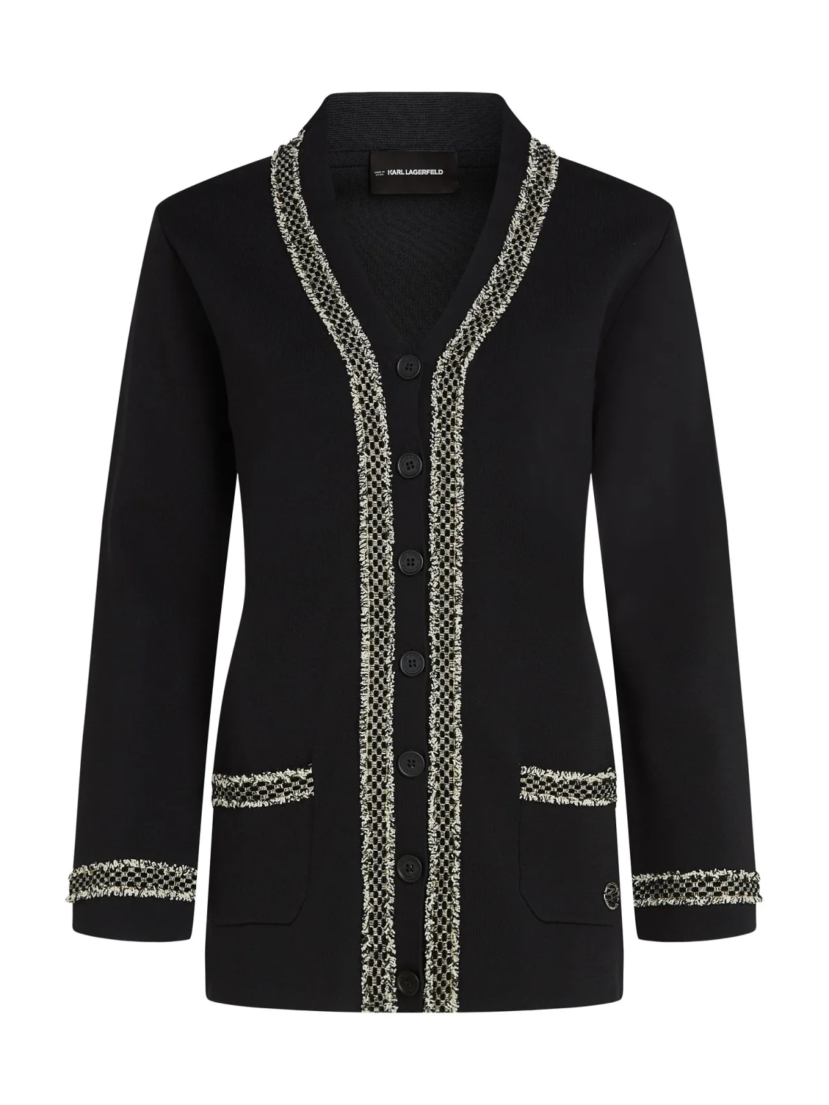 - Bij otrium.nl kun je Karl Lagerfeld Black Boucle Detail Cardigan kopen voor slechts €120,00 , dat is 33% goedkoper dan bij ABOUT YOU (€179,40).