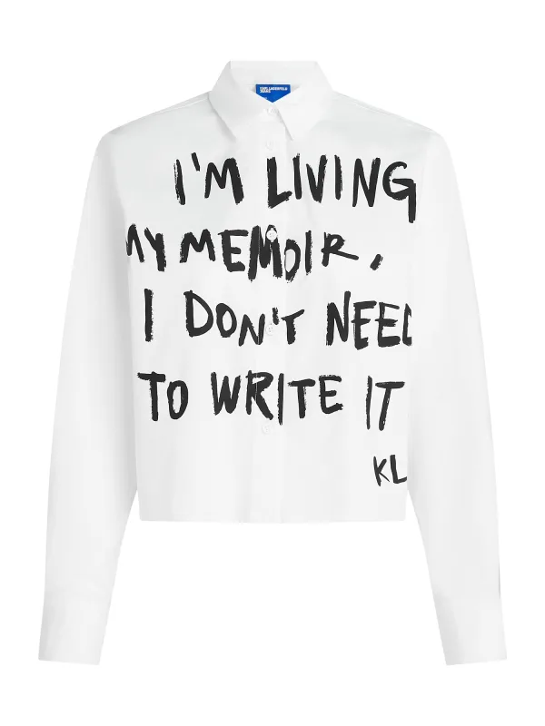 Blouse type: Klassieke blouse; Design: Knop placket; Materiaal: Katoen; Motief: Tekst print; Kraag: Kentkraag; Extra's: Op staal naden; Pasvorm: Normale pasvorm; Armlengte: Lange mouw; Lengte: Normale lengte
