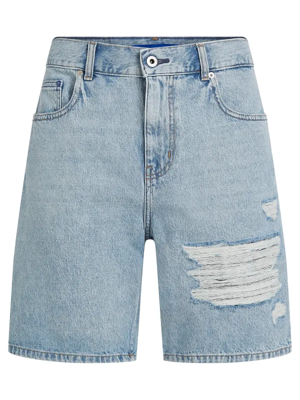 Design: Ritssluiting; Type sluiting: Ritssluiting; Materiaal: Denim; Motief: Effen; Extra's: Label patch/label flag; Wassing: ripped; Lengte: Knielengte; Pasvorm: Regular