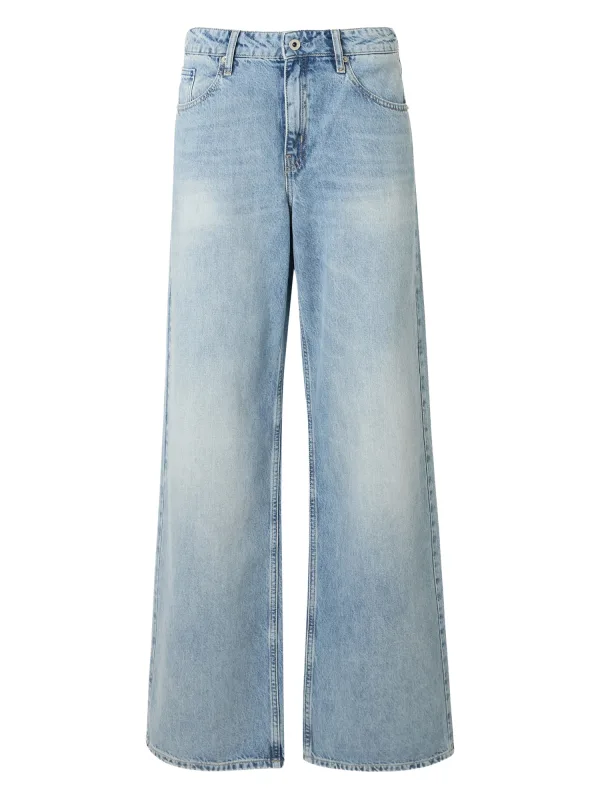 Design: Gevoerde zoom/rand, Ritssluiting, 5-pocket-style; Type sluiting: Ritssluiting; Materiaal: Denim; Motief: Effen; Extra's: Studs, Contrasterende naden, Label patch/label flag; Wassing: Light washed; Lengte: Lang/maxi; Pasvorm: Wide leg; Taillehoogte: Mid waist
