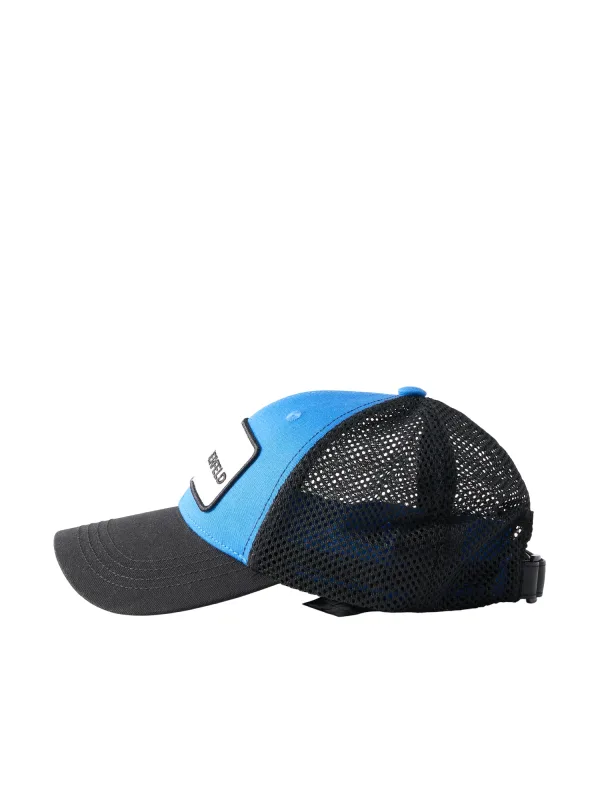 Pet detail: Gebogen scherm; Design: Materiaal mix; Type sluiting: Velcro sluiting; Motief: Logoprint; Materiaal: Textiel; Captype: Trucker pet; Extra's: Mesh, Licht transparant, Label patch/label flag