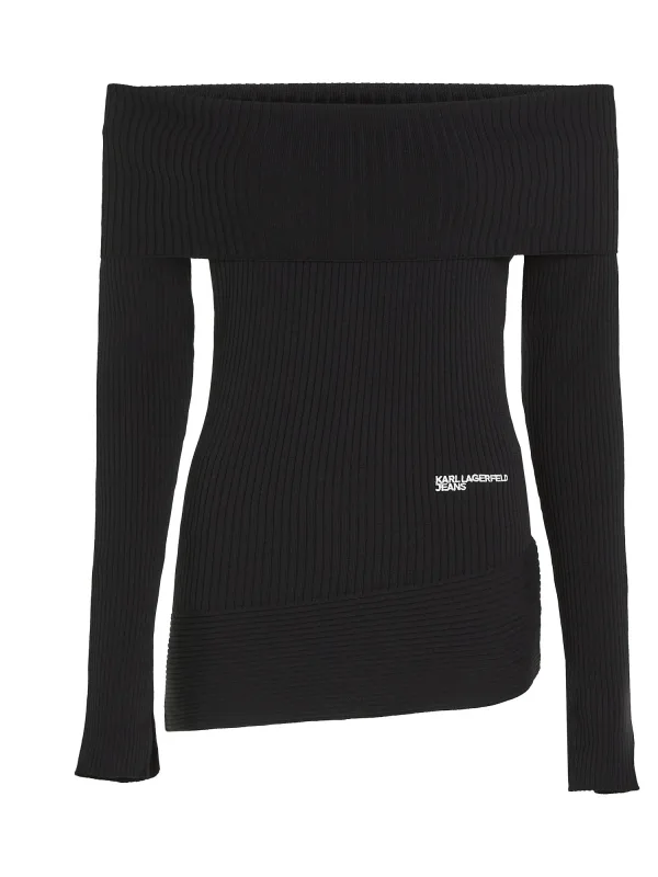 Design: Strapless/off-shoulder; Materiaal: Knitwear; Halstype: Carmen hals; Motief: Logoprint; Details: Borduursels; Extra's: Label borduurwerk; Pasvorm: Normale pasvorm; Armlengte: Lange mouw; Lengte: Normale lengte