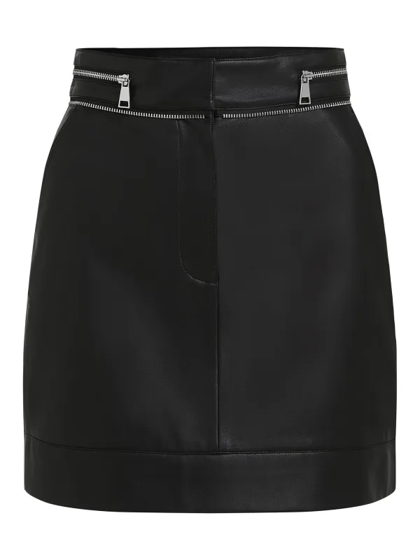Design: Gevoerde zoom/rand; Type sluiting: Ritssluiting; Materiaal: Imitatieleder; Motief: Effen; Rokvorm: Minirok; Extra's: Gladde stof; Lengte: Kort/mini; Pasvorm: Normale pasvorm
