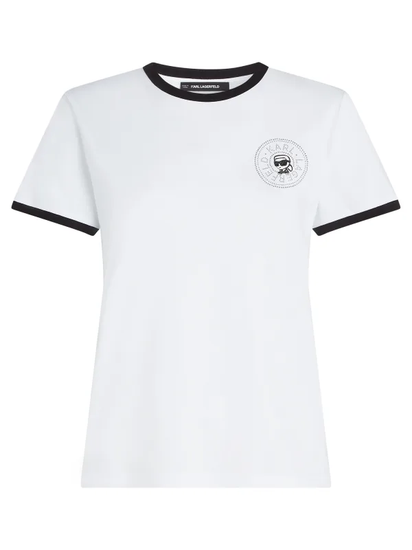 Design: Gevoerde zoom/rand; Materiaal: Jersey; Halstype: Ronde hals; Motief: Logoprint; Details: Borduursels, Sierstenen; Extra's: Voelt zacht aan; Pasvorm: Normale pasvorm; Armlengte: Kwartmouw; Lengte: Normale lengte