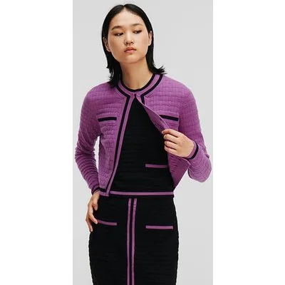 Karl Lagerfeld Textured Classic Knit Cardigan Iris Orchid/black Prijzen