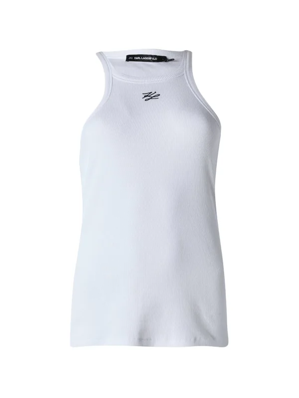Design: Geribbelde kraag, Geribbeld gebreid; Materiaal: Jersey; Halstype: Ronde hals; Motief: Effen; Soort bandjes: Normale bandjes; Details: Borduursels; Extra's: Label borduurwerk, Voelt zacht aan; Pasvorm: Slanke pasvorm; Armlengte: Mouwloos; Lengte: Normale lengte