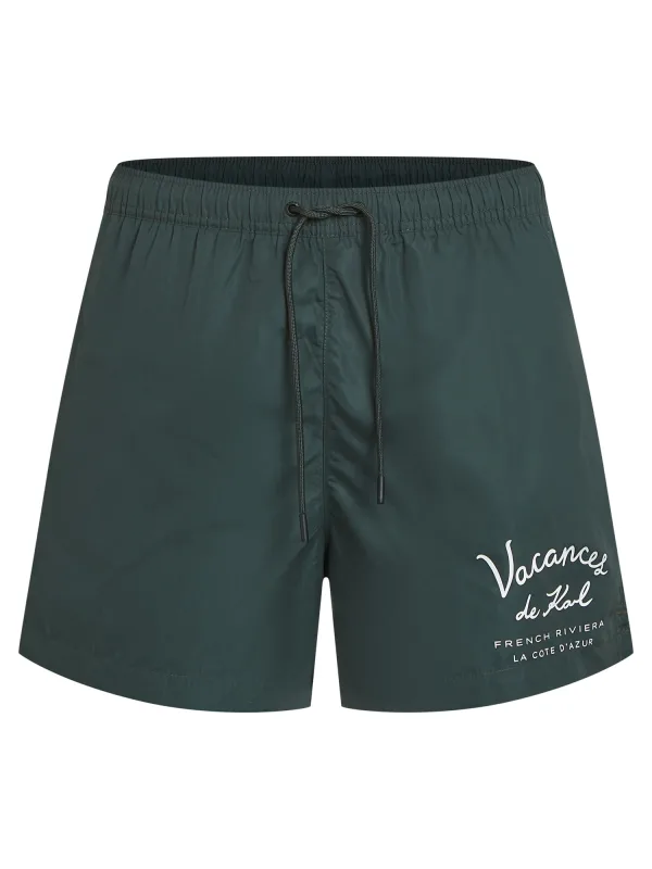 Specificaties: Karl Lagerfeld Zwemshorts ‘Vacances de Karl’ donkergroen / wit