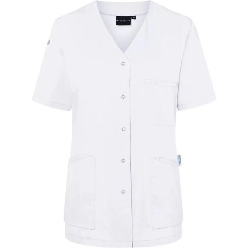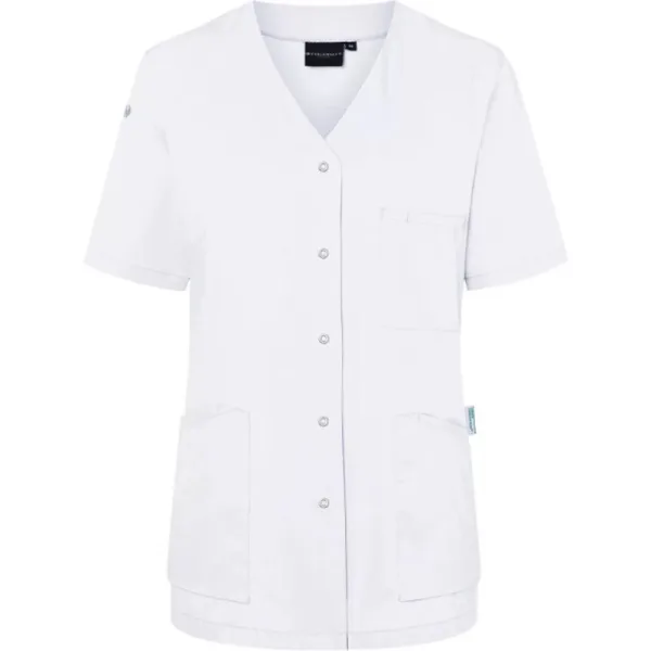 65% gerecycleerd polyester, 35% katoen. Stof: Keperbinding. Ontwerp: Eenvoudig. Zakken: 2 zijzakken, Patch, 1 binnenzak, verborgen, 1 borstzak, pennenzakje. Mouwtype: Korte mouwen. Hals: V Hals. Stoftechnologie: Kleurecht, Lichtgewicht. Onderhoudsvriendelijk, Sleutelring. 150 g/m². Duurzaamheid: Green Button, Oeko-Tex Standaard 100 gecertificeerd, Duurzame materialen. XS: 36 in. S: 39 in. M: 42,5 in. L: 45,5 in. XL: 49,5 in. XXL: 53,5 in. 3XL: 57,5 in.