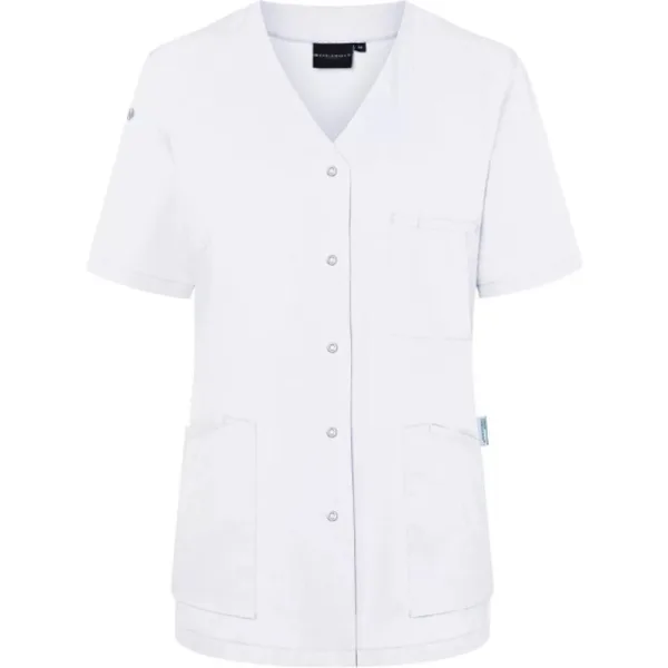 65% gerecycled polyester, 35% keperstof katoen. Ontwerp: Geborduurd logo, Effen. Zakken: 2 zijzakken, patch, binnenzak met lus, verborgen, 1 borstzak, pennenzakje. Mouwtype: Korte mouwen. Sluiting: Slip-on. Hals: V Hals. Stoftechnologie: Lichtgewicht. Kleurecht, Onderhoudsvriendelijk. 150 g/m². Duurzaamheid: Eco-vriendelijk, Green Button, GRS-gecertificeerd, Oeko-Tex Standaard 100-gecertificeerd, Duurzame materialen. XS: 34 in. S: 38 in. M: 42 in. L: 46 in. XL: 50 in. XXL: 54 in. 3XL: 58 in.
