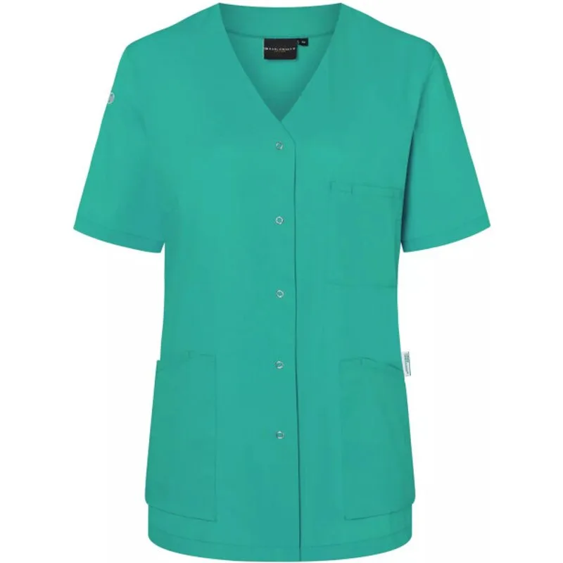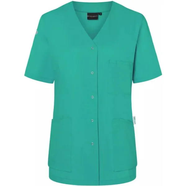 65% gerecycled polyester, 35% keperstof katoen. Ontwerp: Geborduurd logo, Effen. Zakken: 2 zijzakken, patch, binnenzak met lus, verborgen, 1 borstzak, pennenzakje. Mouwtype: Korte mouwen. Sluiting: Slip-on. Hals: V Hals. Stoftechnologie: Lichtgewicht. Kleurecht, Onderhoudsvriendelijk. 150 g/m². Duurzaamheid: Eco-vriendelijk, Green Button, GRS-gecertificeerd, Oeko-Tex Standaard 100-gecertificeerd, Duurzame materialen. XS: 34 in. S: 38 in. M: 42 in. L: 46 in. XL: 50 in. XXL: 54 in. 3XL: 58 in.