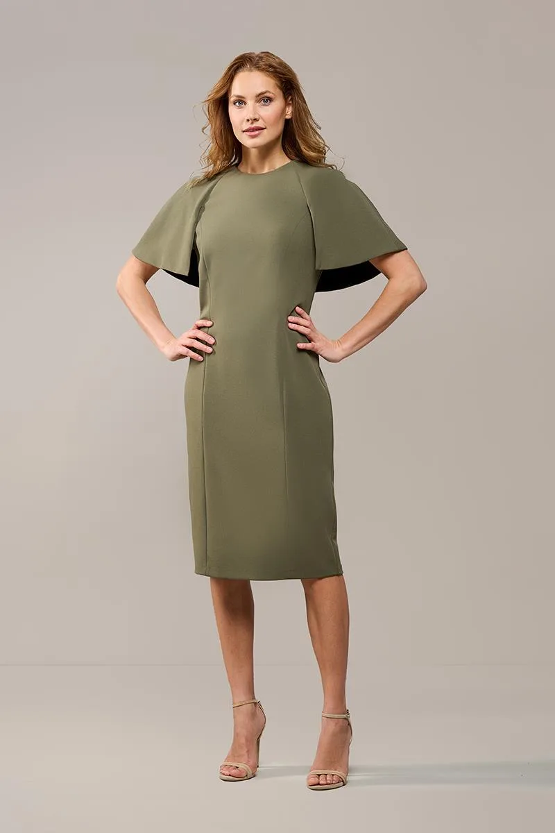 Ontdek je nieuwe must-have: de groene Kate jurk is een toonbeeld van elegantie en verfijning. Met haar luxe uitstraling en perfecte pasvorm is deze stijlvolle jurk een echte blikvanger. Gemaakt van een hoogwaardige, zijdeachtige stof met een vleugje elastaan, biedt de jurk een lichte stretch en uitzonderlijk draagcomfort. Het getailleerde ontwerp flatteert je figuur op subtiele wijze en valt elegant tot net boven de knieën. Het unieke capeje, dat gracieus over de schouders en mouwen valt, geeft de jurk een moderne en minimalistische touch. Dankzij de volledige voering valt de jurk perfect langs je lichaam, terwijl de subtiele split aan de achterkant zorgt voor extra bewegingsvrijheid en een speels detail. Naast de trendy olijfgroene kleur is deze prachtige jurk ook verkrijgbaar in offwhite en roze.