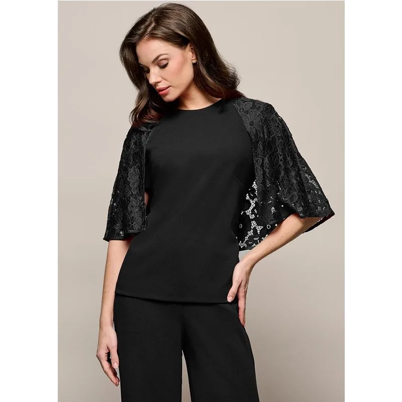De Katherina top van Mart Visser is een elegant en verfijnd ontwerp dat direct een stijlvolle indruk maakt. Deze zwarte designer top, geïnspireerd door de Haute Couture van Mart Visser, combineert luxueuze stretch crêpe met een subtiele ton-sur-ton kanten cape. Het zachte, transparante kant valt soepel over de schouders en geeft het geheel een elegante, gelaagde uitstraling, terwijl het aansluitende lijfje de vrouwelijke vormen mooi accentueert. De top is voorzien van korte mouwen onder de cape en een lengte tot op de heup, en is afgewerkt met een blinde ritssluiting aan de achterzijde. Door de combinatie van matte crêpe en fijn kant krijgt de top een luxe uitstraling en kan hij moeiteloos worden gecombineerd met een pantalon voor een moderne, stijlvolle look. Perfect geschikt voor zowel formele gelegenheden als chique avondmomenten.
