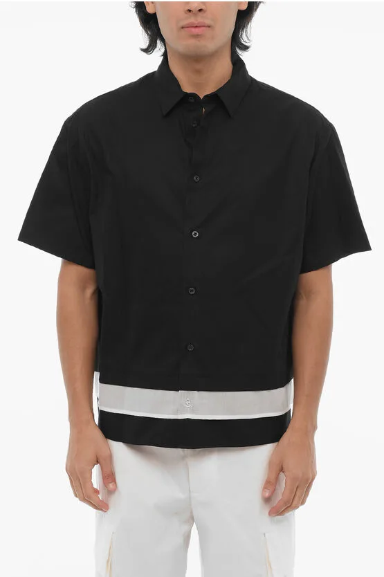 Katoenen poplin overhemd met contrasterende rand in zwart Prijzen