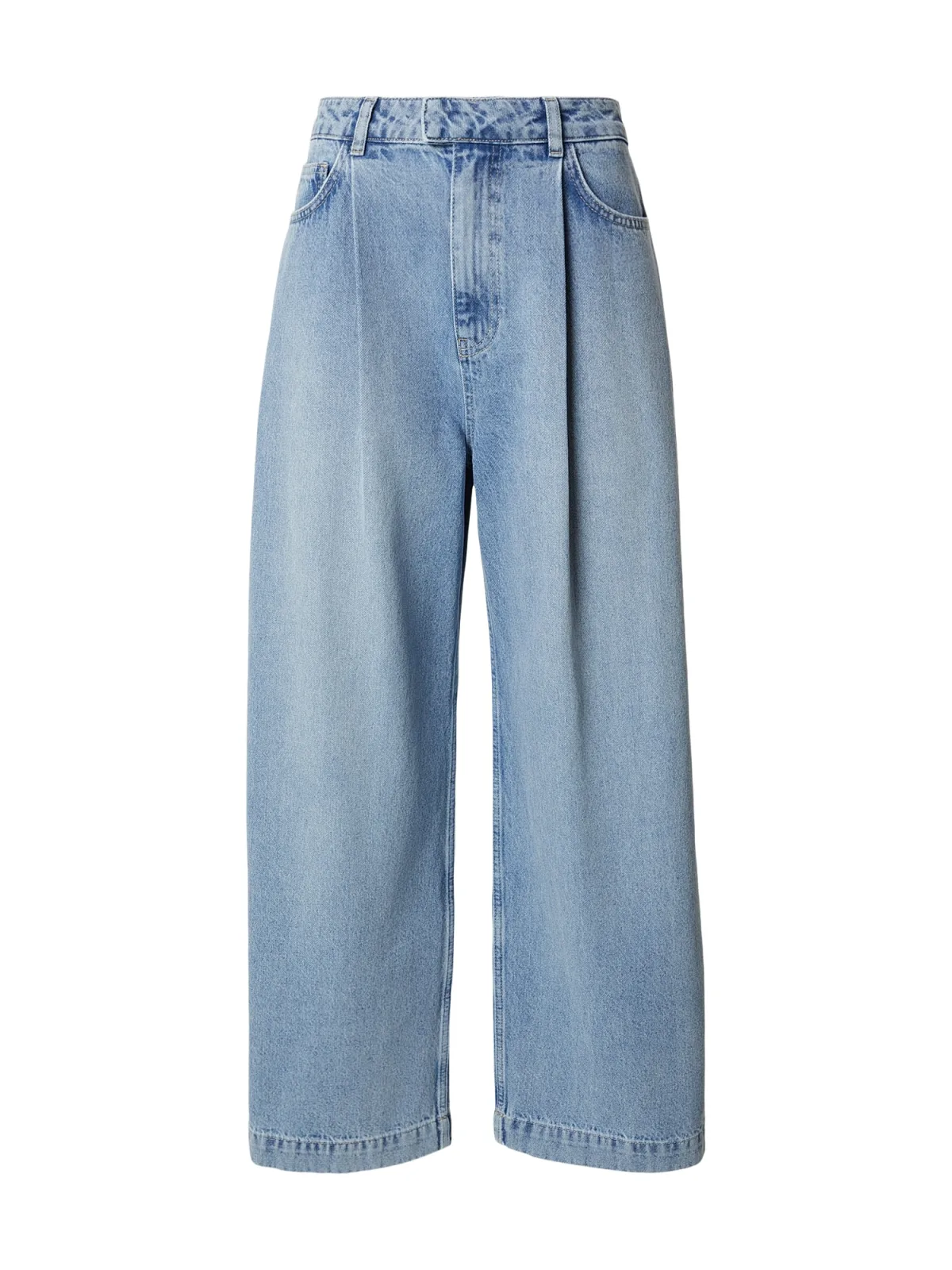 Design: Gevoerde zoom/rand, Rechte zoom, Ritssluiting, 5-pocket-style; Materiaal: Denim; Motief: Effen; Extra's: Contrasterende naden, Riemlussen; Wassing: Blauw denim; Lengte: Lang/maxi; Pasvorm: Baggy; Taillehoogte: Low waist