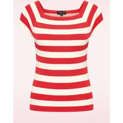 ''With good basics you'll have endless options!'' Voeg deze Kaylie top dan snel toe aan je shoppingbag, want ze is perfect voor het komende seizoen! De mooie aansluitende pasvorm combineert uitstekend met de korte raglan mouwtjes terwijl de vierkante halslijn haar een extra vleugje elegantie geeft. Uitgevoerd in een fijngebreide, soepele en stretchy bamboe viscosemix met een streeppatroon in koraal bloesem en wit, die heerlijk draagt. Zie jij alle fantastische combi's al voor je? ;-) * Vierkante halslijn * Korte raglan mouwen * Lang genoeg om op een normale heupbroek te dragen
