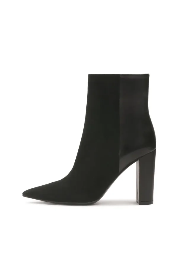 Design: Ritszakken aan de zijkant; Type sluiting: Ritssluiting; Type hak: Blokhak; Materiaal: Leer; Motief: Effen; Materiaal: Suède; Schoenneus: Spitse neus; Extra's: Op staal naden; Hakhoogte: Hoge hak (7-10 cm)
