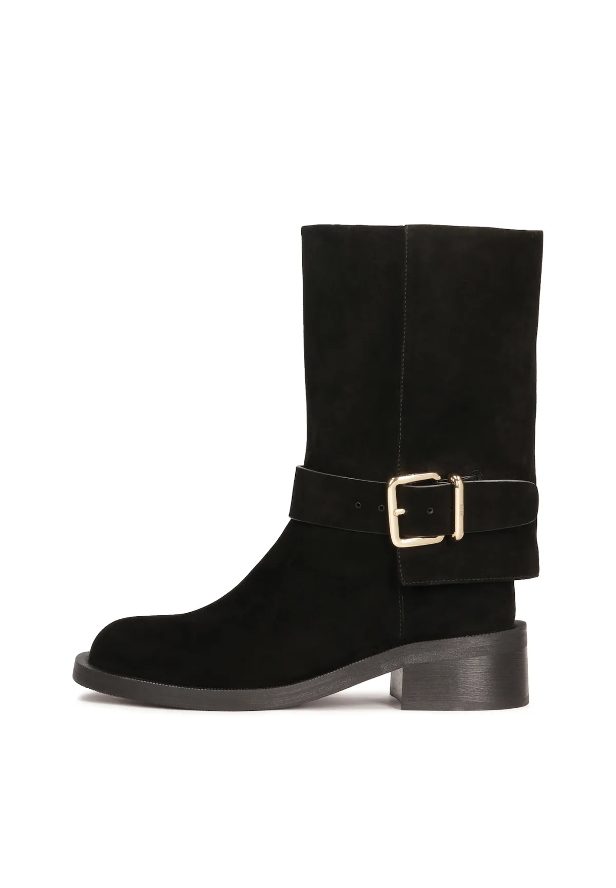 Design: Gesp; Type sluiting: Slip; Type hak: Blokhak; Materiaal: Leer; Motief: Effen; Materiaal: Suède; Schoenneus: Ronde neus; Extra's: Flexibele zool; Hakhoogte: Middelhoge hak (3-7 cm)