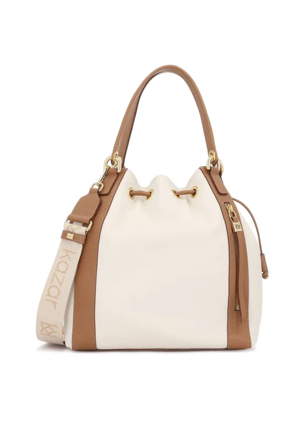 Design: Ruim hoofdvak; Type sluiting: Koord; Materiaal: Leer; Motief: Color-Blocking; Materiaal: Glad leer; Extra's: Draagbaar op 2 manieren; Maat: Klein; Hengsellengte: Lange schouderriemen, Korte schouderriemen
