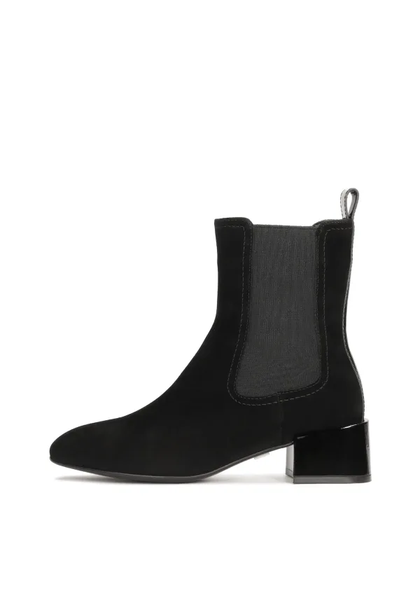 Design: Elastische inzetstukken; Type sluiting: Slip; Type hak: Blokhak; Materiaal: Leer; Motief: Effen; Materiaal: Suède; Schoenneus: Ronde neus; Extra's: Op staal naden; Voering: Warm gevoerd; Hakhoogte: Platte hak (0-3 cm)
