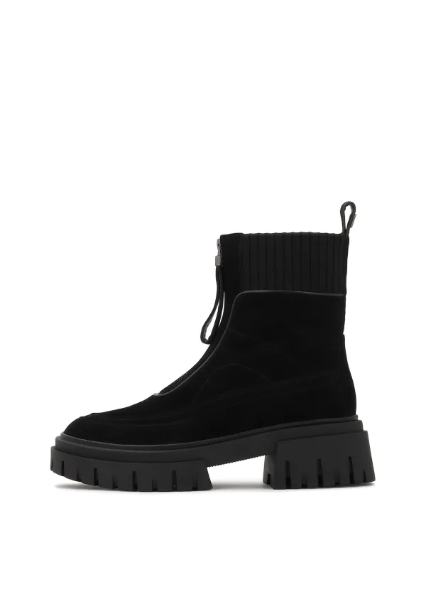 Design: Geribd ceintuurtje, Profielzolen, Hielband; Type sluiting: Ritssluiting; Type hak: Blokhak; Materiaal: Leer; Motief: Effen; Plateau: Met plateau; Materiaal: Suède; Schoenneus: Ronde neus; Extra's: Anti-slip zool; Hakhoogte: Middelhoge hak (3-7 cm)