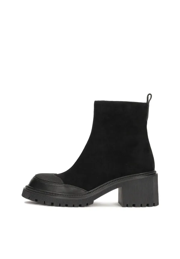 Design: Profielzolen; Type sluiting: Ritssluiting; Type hak: Blokhak; Materiaal: Leer; Motief: Effen; Plateau: Met plateau; Materiaal: Suède; Schoenneus: Ronde neus; Extra's: Flexibele zool; Hakhoogte: Middelhoge hak (3-7 cm)