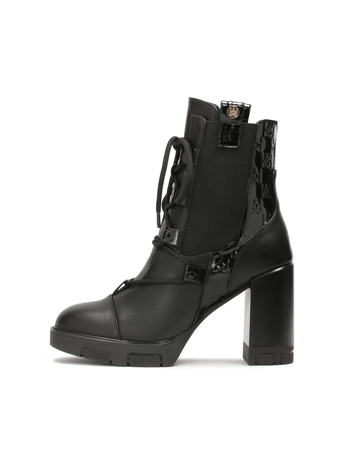 Design: Profielzolen; Type sluiting: Snoersluiting; Type hak: Blokhak; Materiaal: Leer; Motief: Effen; Plateau: Met plateau; Materiaal: Glad leer; Schoenneus: Ronde neus; Extra's: Flexibele zool; Hakhoogte: Hoge hak (7-10 cm)