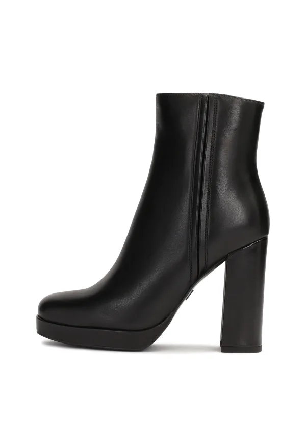 Design: Profielzolen; Type sluiting: Ritssluiting; Type hak: Blokhak; Materiaal: Leer; Motief: Effen; Plateau: Met plateau; Materiaal: Glad leer; Schoenneus: Ronde neus; Extra's: Flexibele zool; Hakhoogte: Middelhoge hak (3-7 cm)