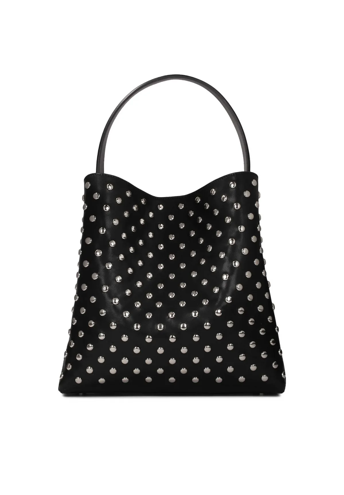 Design: Ruim hoofdvak; Type sluiting: Magnetische sluiting; Materiaal: Leer; Motief: Gestippeld; Materiaal: Glad leer; Extra's: Studs; Maat: Klein; Hengsellengte: Korte schouderriemen