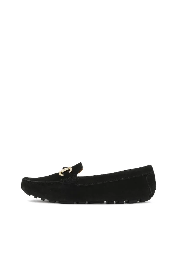 Design: Profielzolen; Type sluiting: Slip; Materiaal: Leer; Motief: Effen; Materiaal: Suède; Schoenneus: Ronde neus; Extra's: Applicaties, Mocassin stiksels, Stevige stof; Hakhoogte: Platte hak (0-3 cm)