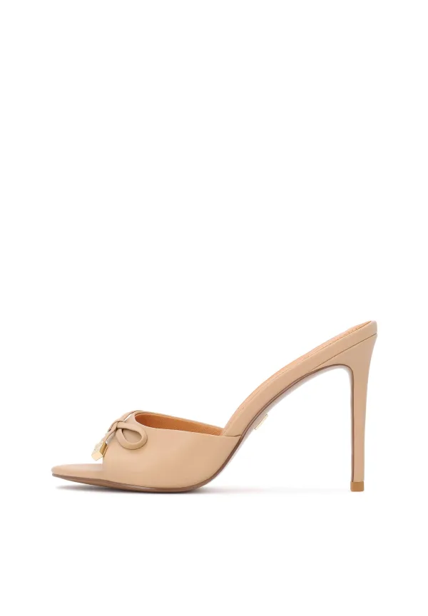 Design: Gevoerd, Versterkte hak; Type sluiting: Slip; Type hak: Stiletto; Materiaal: Leer; Motief: Effen; Materiaal: Glad leer; Schoenneus: Open toe; Extra's: Applicaties, Op staal naden; Hakhoogte: Hoge hak (7-10 cm)