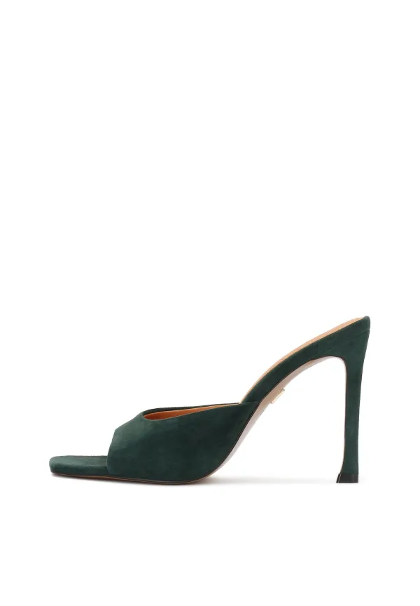 Design: Profielzolen; Type hak: Stiletto; Materiaal: Leer; Motief: Effen; Materiaal: Suède; Schoenneus: Open toe; Extra's: Flexibele zool; Hakhoogte: Hoge hak (7-10 cm)
