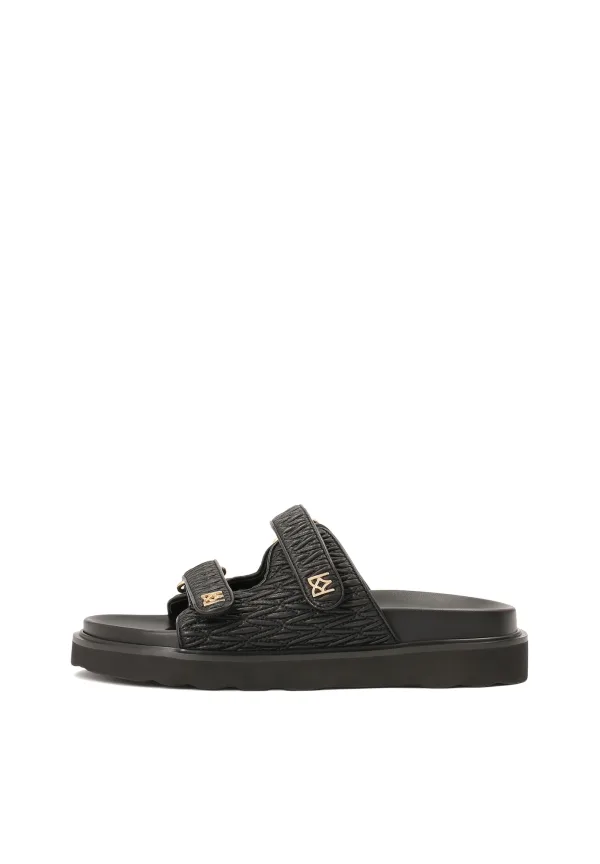 | Prijsgeschiedenis voor Black embossed leather slides on a comfortable sole | |