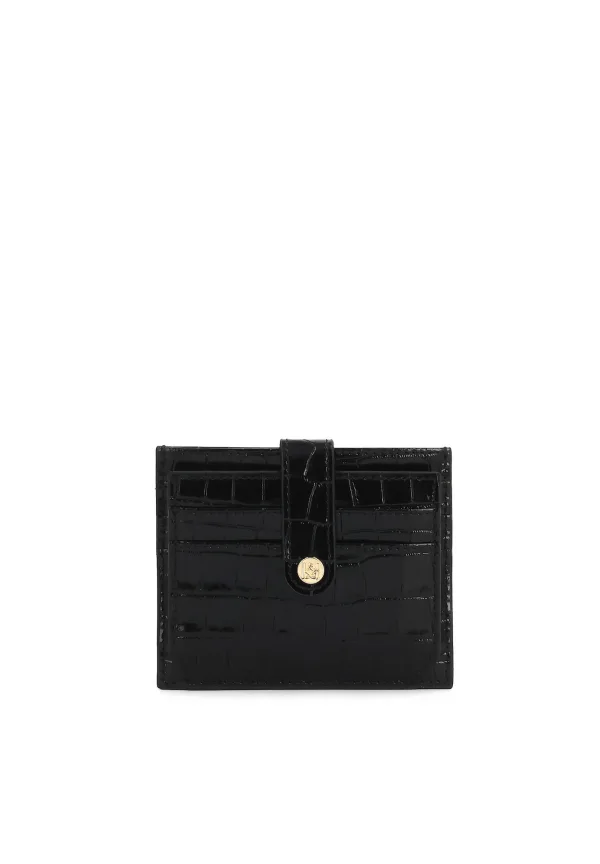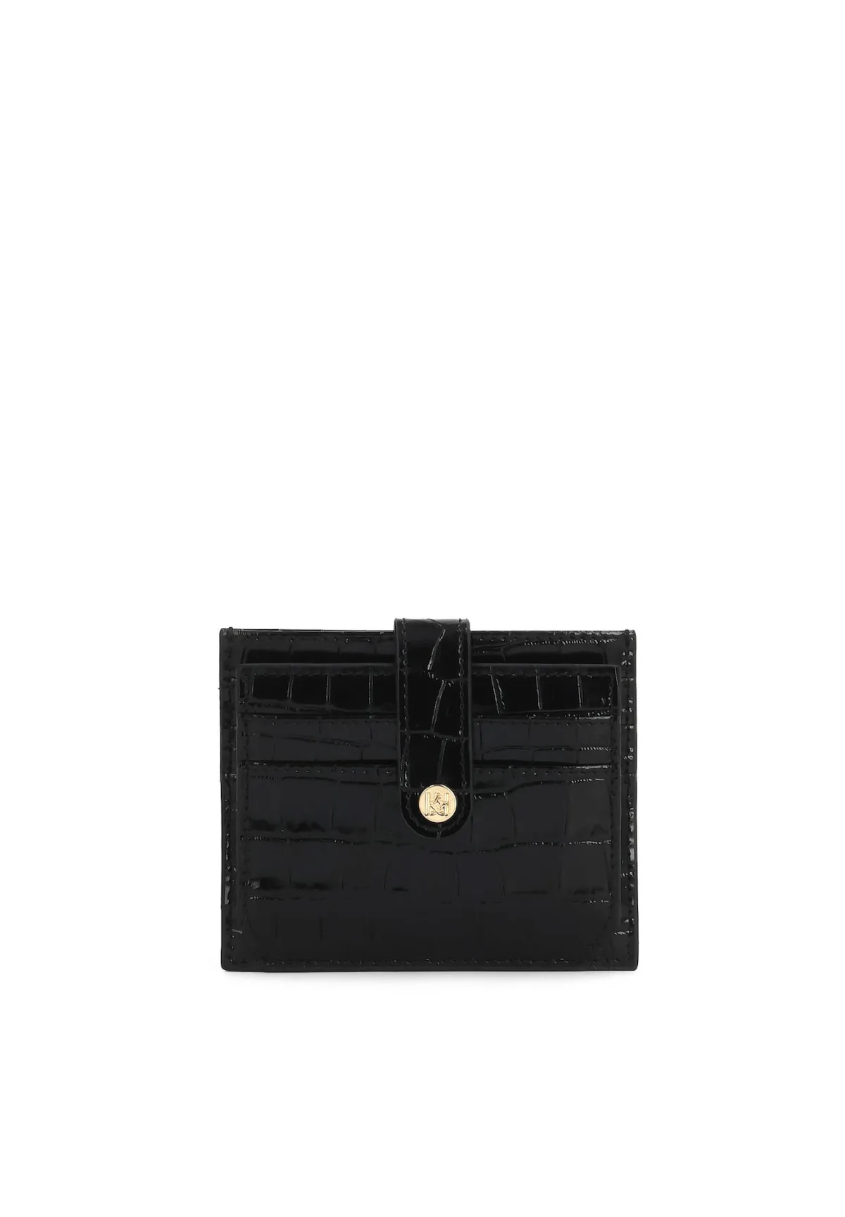 Design: Kaartvakjes, Schijnvak; Type sluiting: Drukknoop; Motief: Effen; Materiaal: Glad leer; Extra's: Label preegdruk