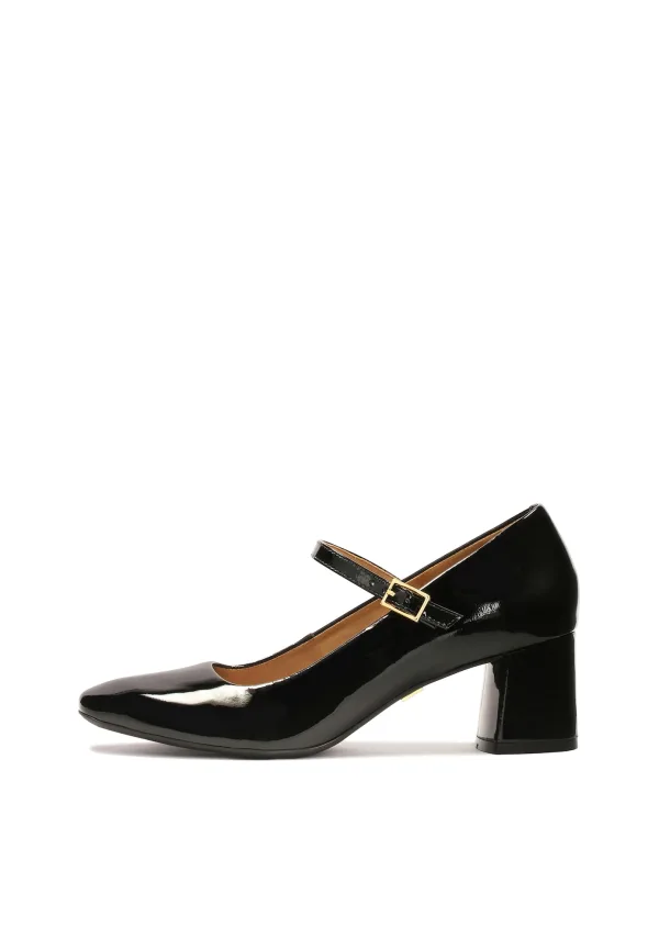 Design: Pumps met enkelbandje, Verstelbare riemen; Type sluiting: Riemsluiting; Type hak: Blokhak; Materiaal: Leer; Motief: Effen; Materiaal: Glad leer; Schoenneus: Vierkante neus; Extra’s: Glanzend, Op staal naden; Hakhoogte: Middelhoge hak (3-7 cm)