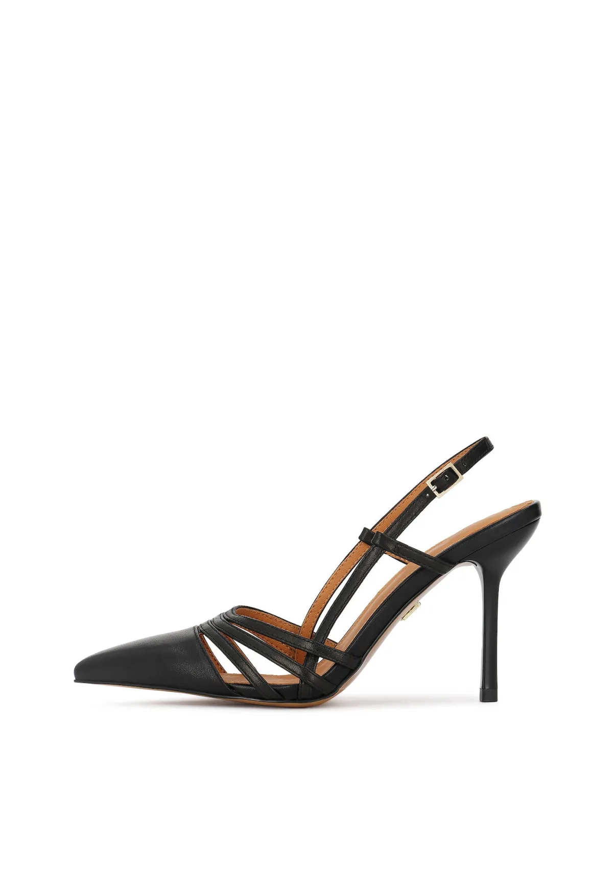 Design: Gevoerd, Pumps met enkelbandje; Type hak: Stiletto; Materiaal: Leer; Motief: Effen; Materiaal: Glad leer; Schoenneus: Spitse neus; Extra's: Stevige stof, Flexibele zool; Hakhoogte: Hoge hak (7-10 cm)