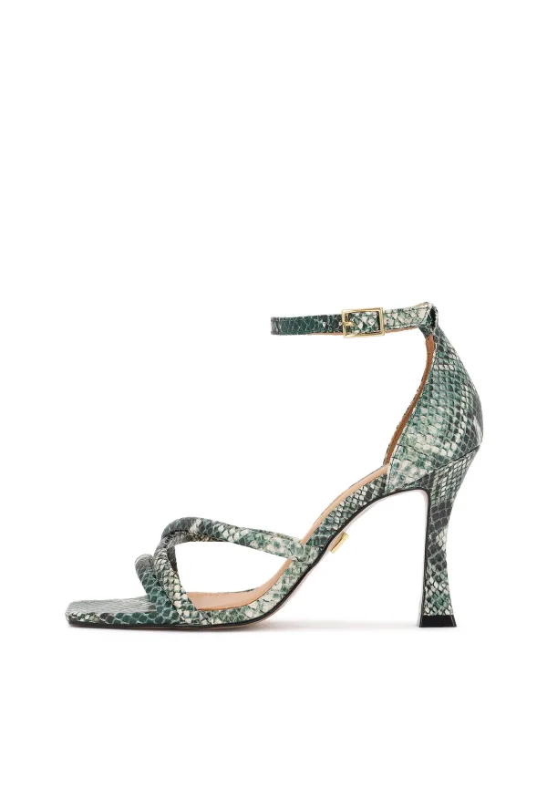 Design: Pumps met enkelbandje, Enkelbanden; Type sluiting: Riemsluiting; Type hak: Stiletto; Materiaal: Leer; Motief: Dierenprint; Materiaal: Glad leer; Schoenneus: Open toe; Extra's: All-over patroon, Reptile look; Hakhoogte: Hoge hak (7-10 cm)