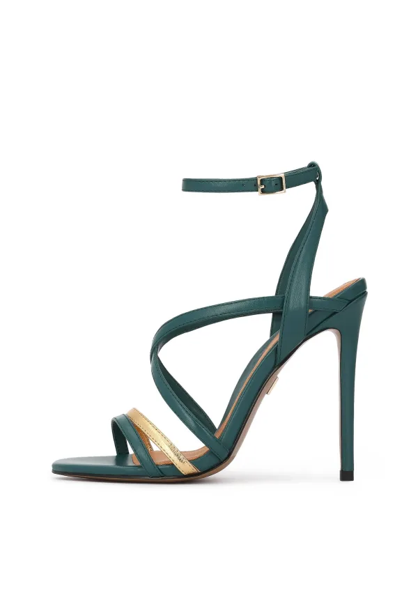 Design: Verstelbare riemen; Type sluiting: Riemsluiting; Type hak: Stiletto; Materiaal: Leer; Motief: Color-Blocking; Materiaal: Glad leer; Schoenneus: Open toe; Extra's: Flexibele zool; Hakhoogte: High heels (> 10 cm)