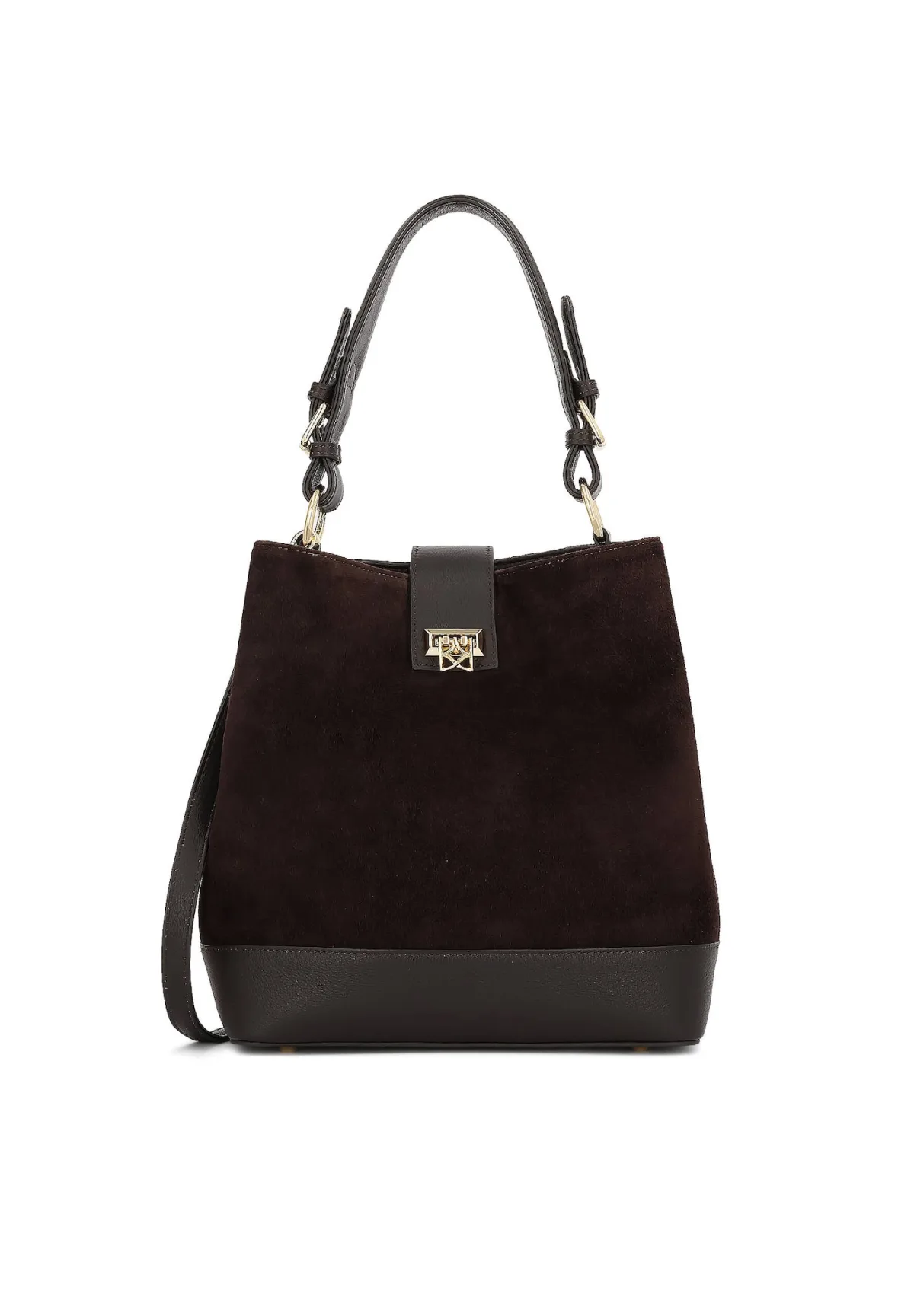 Design: Ruim hoofdvak; Type sluiting: Schroefsluiting; Materiaal: Leer; Motief: Effen; Materiaal: Suède; Extra's: Label plaatje; Maat: Klein; Hengsellengte: Lange schouderriemen, Korte schouderriemen